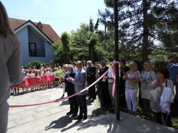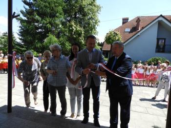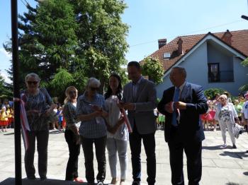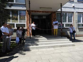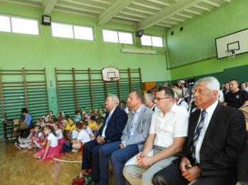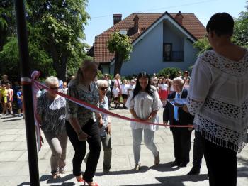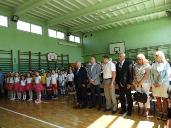 Uroczystość rozpoczęła się od symbolicznego przecięcia wstęgi na wejściu do szkoły, skąd wszyscy uczestnicy przeszli do sali gimnastycznej, gdzie miała miejsce część oficjalna.