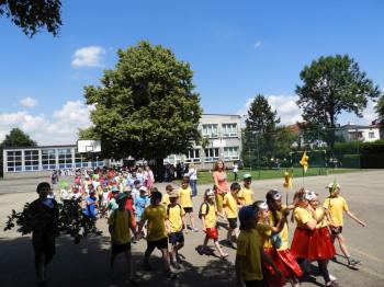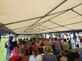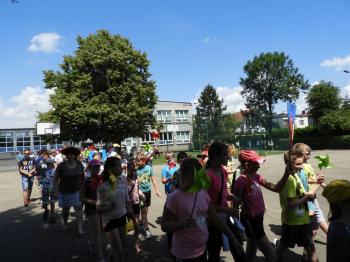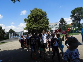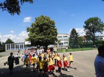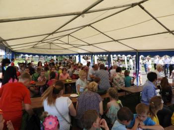 Po części oficjalnej wszyscy obecni zgromadzili się na szkolnym boisku i sformowali radosny pochód, który z towarzyszeniem orkiestry dętej przeszedł ulicami Brzezinki na teren przy OKSiRze, gdzie wszyscy do popołudnia bawili się na pikniku rodzinnym.