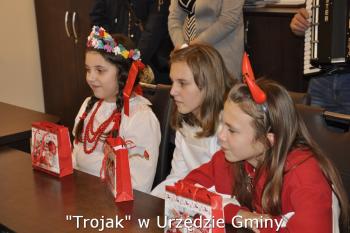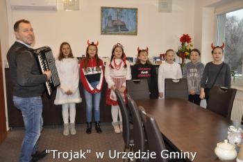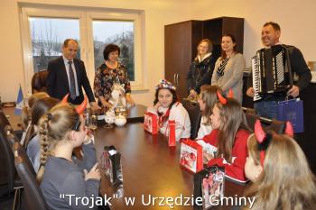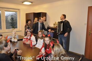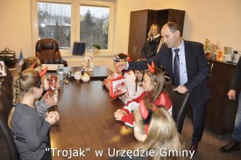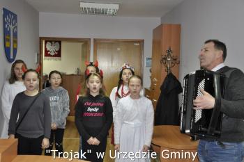 Dzień później w Urzędzie Gminy zagościł Dziecięcy Zespół "Trojak". Tym razem obeszło się bez tańców, bo korytarzach i gabinecie wójta brakuje otwartej przestrzeni. Za to kolędy i pastorałki rozbrzmiały donośnie od dziennika podawczego na parterze po salę sesyjną na trzecim piętrze.