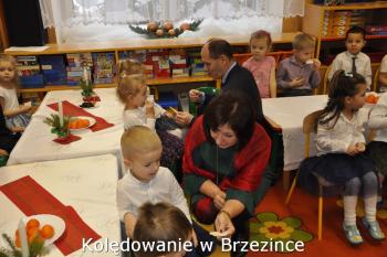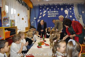 Przedszkolacy z Brzezinki zaprosili samorządowców na wigilię 20 grudnia. Mali i duzi kolędnicy razem śpiewali świąteczne piosenki, ale tylko najmłodsi bezbłędnie opanowali układ gestów i ruchów, który towarzyszył śpiewaniu. Dzieci zostały obdarowane słodyczami, ale w tym dniu najważniejsze były oczywiście życzenia i łamanie się opłatkiem.